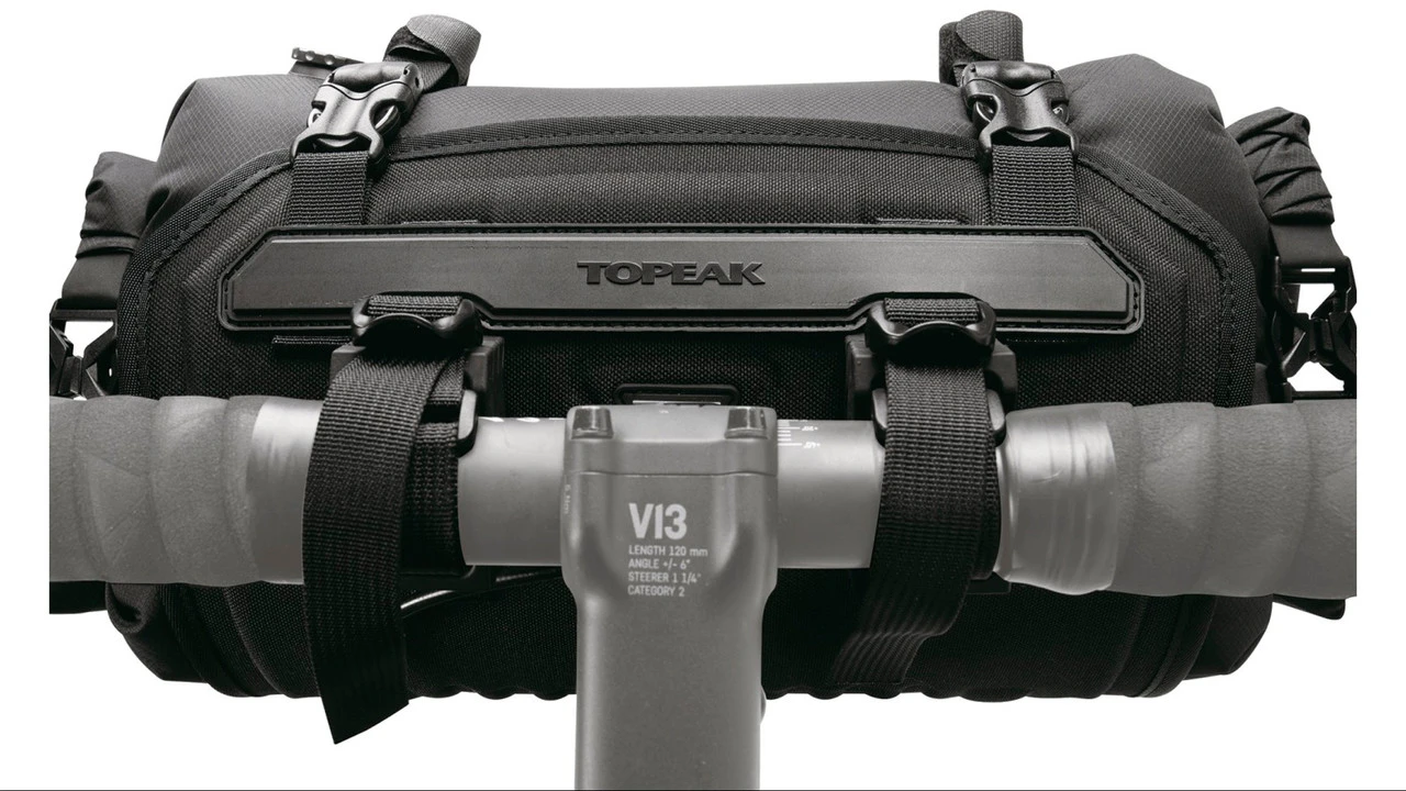 Die Topeak FrontLoader Lenkertasche ist mit 8 Liter Volumen ideal geeignet für leichte und sperrige Gegenstände wie Schlafsack, Zelt oder Wechselkleidung. Gefertigt aus strapazierfähigen, abriebfesten und wasserabweisenden Materialien, lässt sie sich mit zwei Gurten und Quick-Release-Verschlüssen leicht am Lenker befestigen. Eine rückseitige Strapbefestigung am Steuerrohr erhöht die Laststabilität. Der wasserdichte und robuste Packsack (8 l) schützt den Inhalt effektiv vor Wasser und Schmutz. Über ein Ventil lässt sich dieser zudem komprimieren.